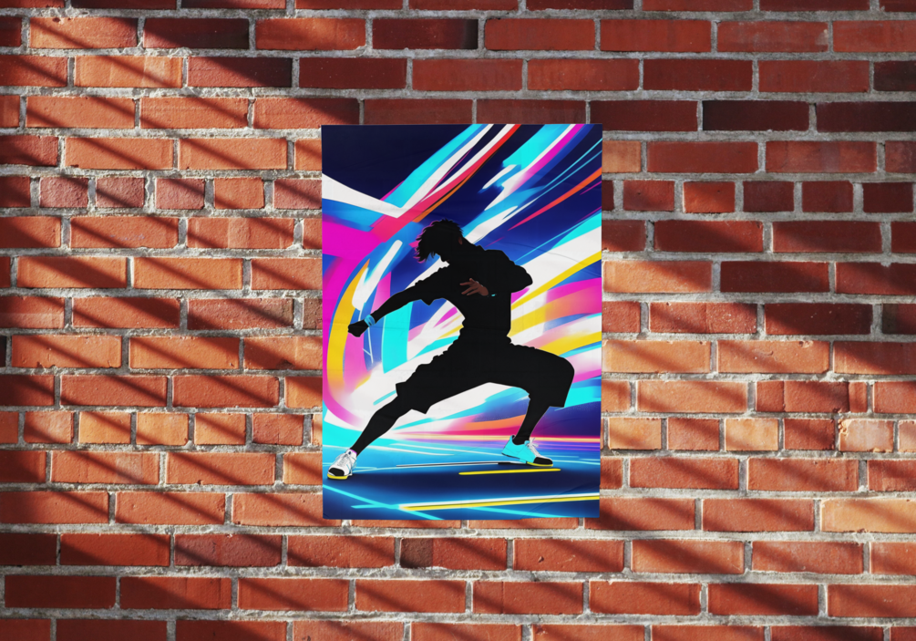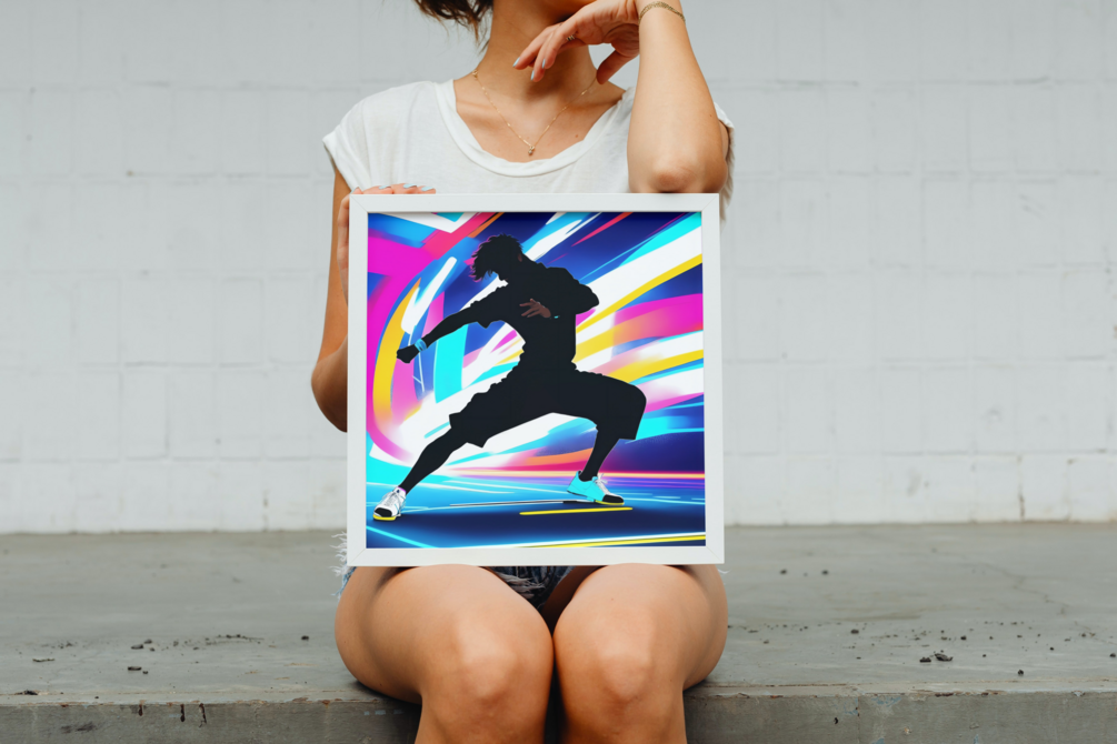 Ignite your surroundings with 'Glowing Moves: Unleashing the Neon Dancer.' This artwork transports you to a vibrant dance floor, where a talented individual commands the space with their electrifying performance. The interplay of neon hues and bold strokes captures the dynamism and passion of the dance, making it a standout piece in any art collection.