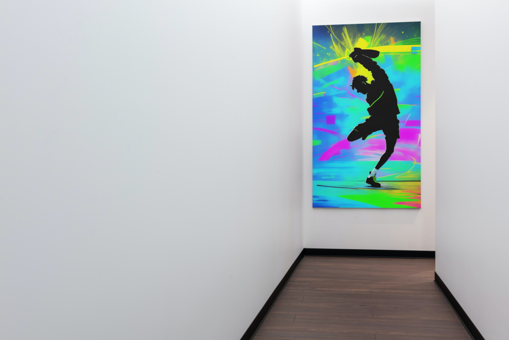 Elevate your space with 'Radiant Rhythms: The Neon B-boying' an artwork that celebrates the artistry of dance and the allure of neon aesthetics. Witness the agility and grace of a breakdancer as they effortlessly navigate through a sea of vibrant lights. This piece not only adds visual impact but also serves as a reminder of the boundless creativity that dance brings to our lives.
